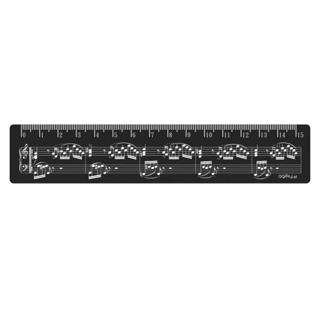 Agifty Creative art & music gifts AGR1029 Fekete, kottamintás vonalzó 15 cm Zenei ajándéktárgy