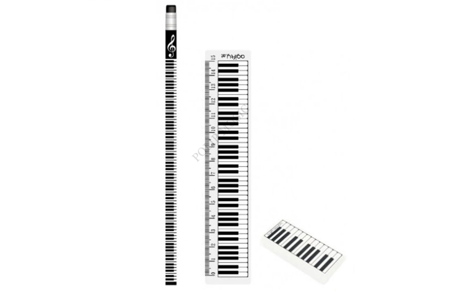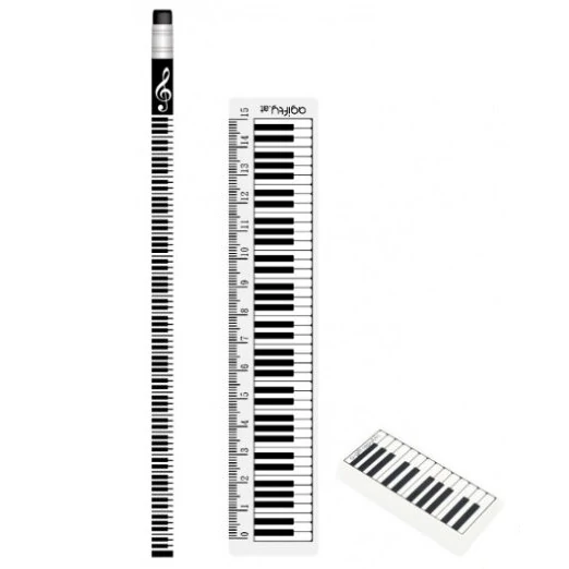 Agifty Creative art & music gifts AGS6010 Fekete, zongorabillentyű mintás írószer készlet 3 db-os készlet Zenei ajándéktárgy