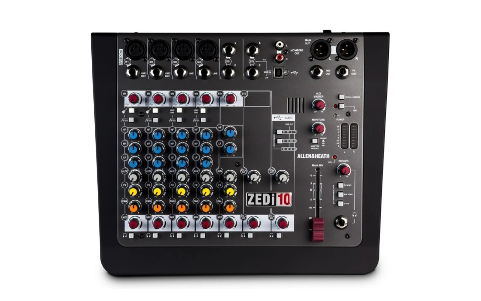 A stúdió minőségű, 24-bit / 96kHz, 4 × 4 USB felület megkönnyíti a lélegzetelállító többsávos felvételek közvetlenül a keverő Mac vagy PC nélkül semmilyen extra felszerelés. Több új GSPre butik előfok, fejlődött ki a tisztelt GS-R24 stúdióban konzolon, a ZED büszkélkedhet kivételesen alacsony zajszint és a hatalmas belmagasság, az aláírás analóg meleget és mélységét. Zedi-10FX tartalmaz egy speciálisan kialakított csomag a stúdió minőségű zengető, késések és speciális multi-modell FX által kialakított Allen & Heath elismert házon hatások rajongók. A gitárosok örömmel tudja, hogy két Zedi-10FX a mono csatornákon található Guitar DI nagy impedanciájú bemenet, így a gitárok csatlakoztatható egyenesen a keverő nélkül a szóváltás és költségére szállító külön DI-boxok.
