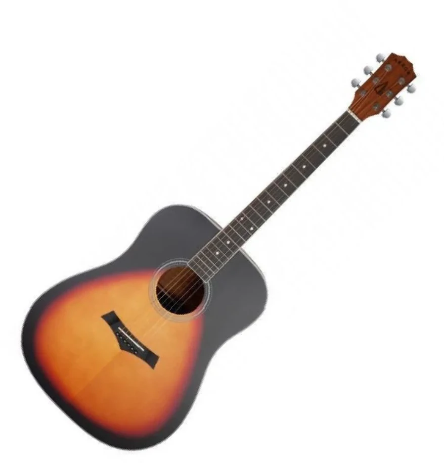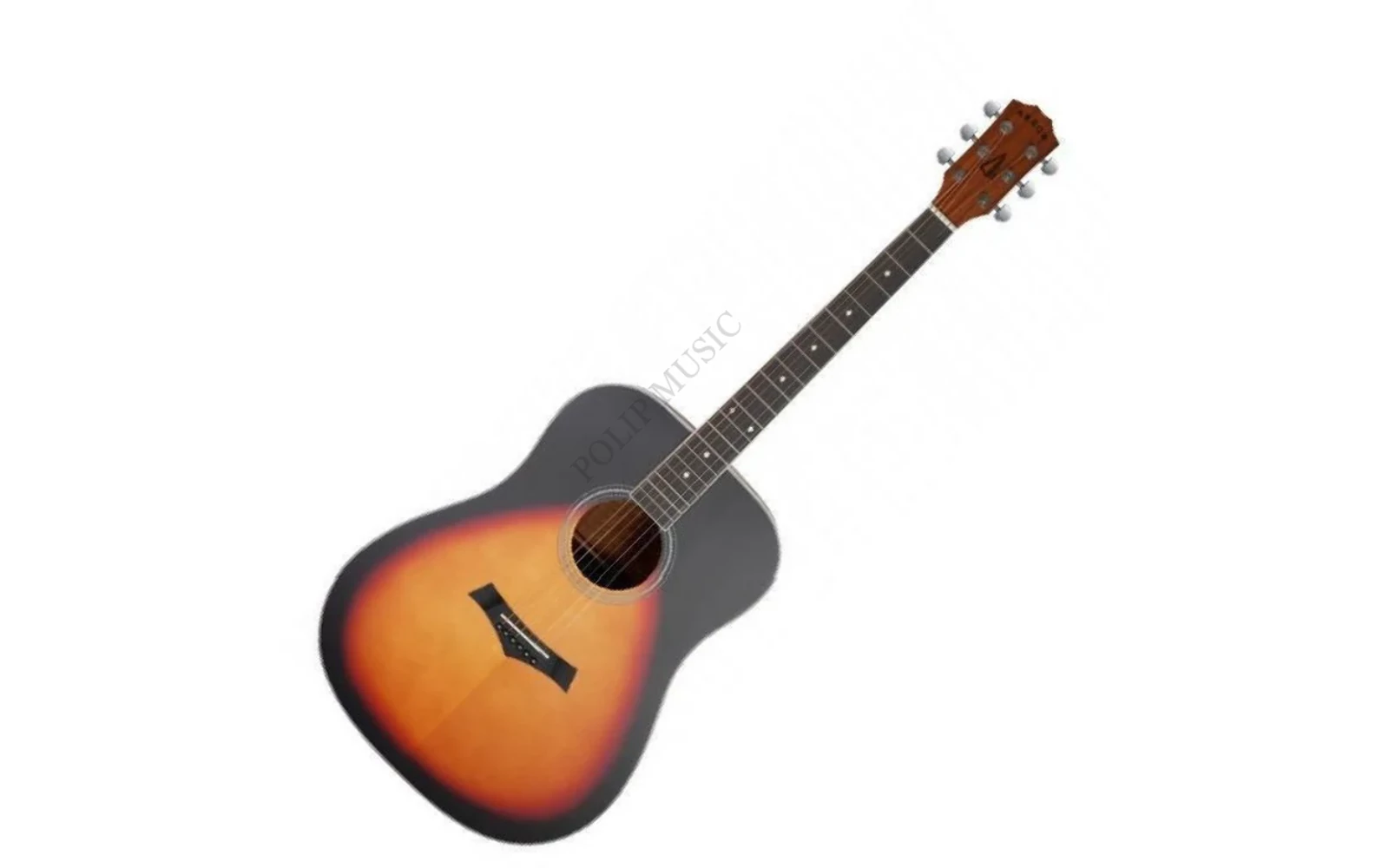 Nyíl Bronz Akusztikus Gitár Dreadnought Body Shape-val. A gitár lucfenyővel rendelkezik. Hátlap és íjak mahagóni. A gitár krómozott hardverrel kapható a Sunburst kivitelben.