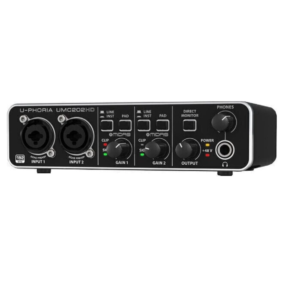 USB Audio interfész 24-bit/192 kHz konverterrel és Midas márkájú előerősítőkkel. Az U-Phoria UMC202HD csúcsminőségű hangzást biztosít, amely még a legkomolyabb audiofileket is megörvendezteti, és számos lehetőséget kínál a rögzítéshez, valamint az azt követő hangszerkesztéshez és utómunkálatokhoz. Az interfész egy pár csúcsminőségű Midas előerősítővel van felszerelve, amelyek külön bemeneti érzékenységet váltanak a vonal és a műszer között, valamint külön potenciométerrel az erősítéshez.