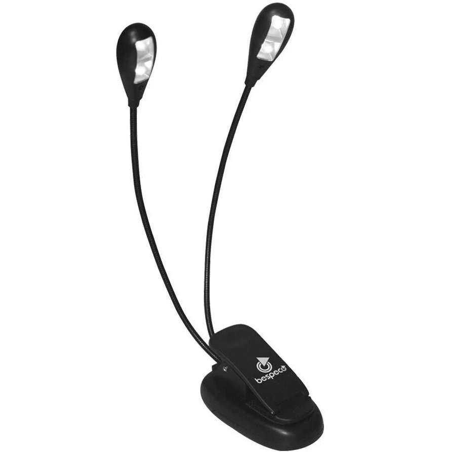 Pultvilágító lámpa: univerzális csíptetős LED lámpa keverőhöz, kottaállványhoz, vagy laptophoz, két flexibilisen állítható nyak, két darab hosszú élettartamú LED dióda, táplálható USB-n keresztül vagy három darab AAA elemről, tartozék USB kábel, fekete színVélemények