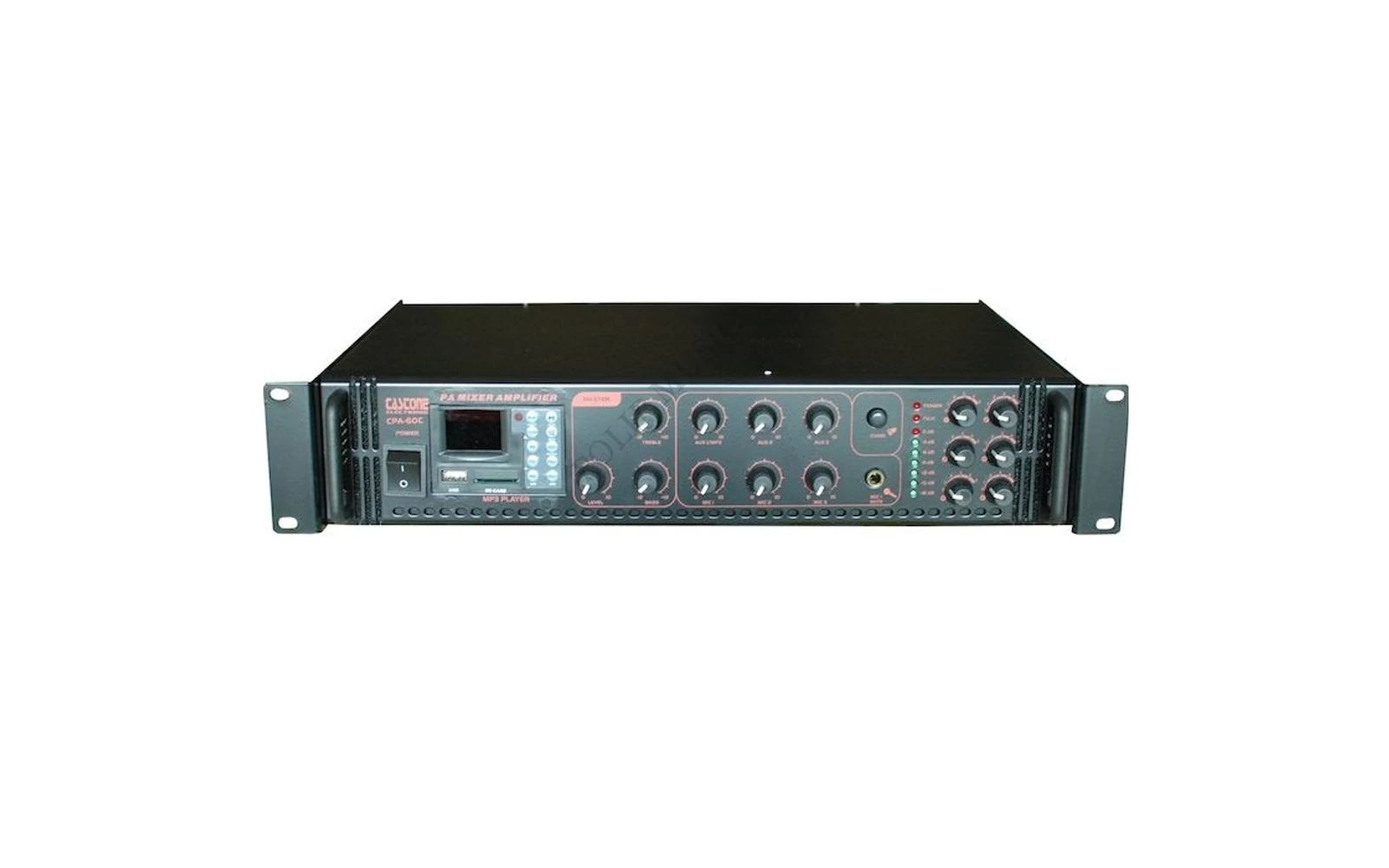 A CPA sorozat MP3 lejátszást támogató, FM tunerrel ellátott, 60W kimenő teljesítményű, három mikrofon és három vonal bemenetű, közös mély, magas hangszínszabályozóval, csatornánkénti hangerőszabályzóval rendelkező keverő erősítője 100V-os hanghálózatokhoz vagy 4-16 Ohm terhelésre használható. Az alábbi jellemzők indokolják ezen készülékek széleskörű alkalmazhatóságát intézmények, áruházak, kültéri rendezvények stb. információs és műsoros hangosítási feladataira.