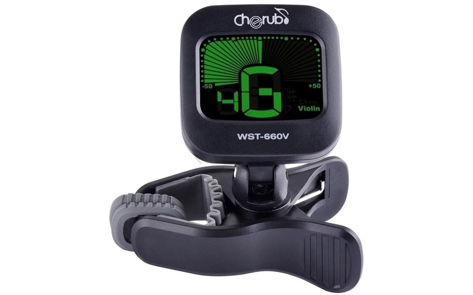 csíptetős hangoló: digitális hangoló kifejezetten hegedűhöz, LCD kijelző, speciális csipesz, amely tökéletesen illeszkedik a hegedűre, a legújabb Cherub szoftver meggyorsítja és még megbízhatóbbá teszi a hangolást, elegáns kivitel, automatikus kikapcsolás 5 perc tétlenség után (játék közben nem kapcsol ki), hangolási tartomány: A0(27.5Hz)~C8(4186Hz), méretek: 59 x 36 x 40 mm, súly: 23g, fekete szín