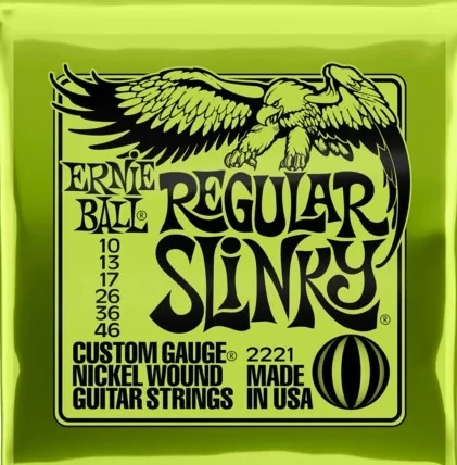 Az Ernie Ball Regular Slinky húrok a legkelendőbb húrok az összes közül. Valamint ezt a húrt kedvelik világszerte leginkább a gitárosok. A Regular Slinky húrokat olyan zenészek használják mint, Eric Clapton, John Mayer, Steve Vai és még sorolhatnám. Ezek a húrok a precíz gyártásnak köszönhetően tökéletes összetételűek, optimális játékérzetet nyújtanak és hosszú az élettartamuk. A Regular Slinky sodort húrjai nickel bevonatú acélhúrok melyek egy hatszögletű acél vezetőszál köré vannak tekerve. A sima húrok vékony bevonatú karbon acélból készülnek, ezzel nyújtva a tökéletesen kiegyensúlyozott hangot a gitárodnak.