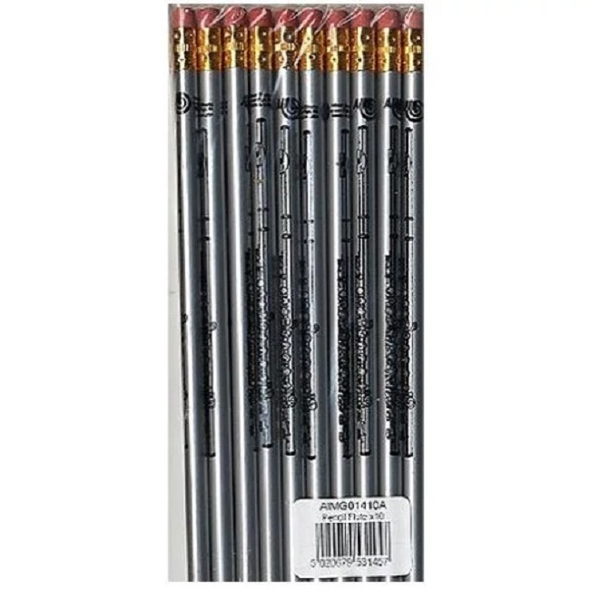 Ezüst színű Ceruza - Fuvolás mintával, radírral AIMG01410A Zenei ajándéktárgy