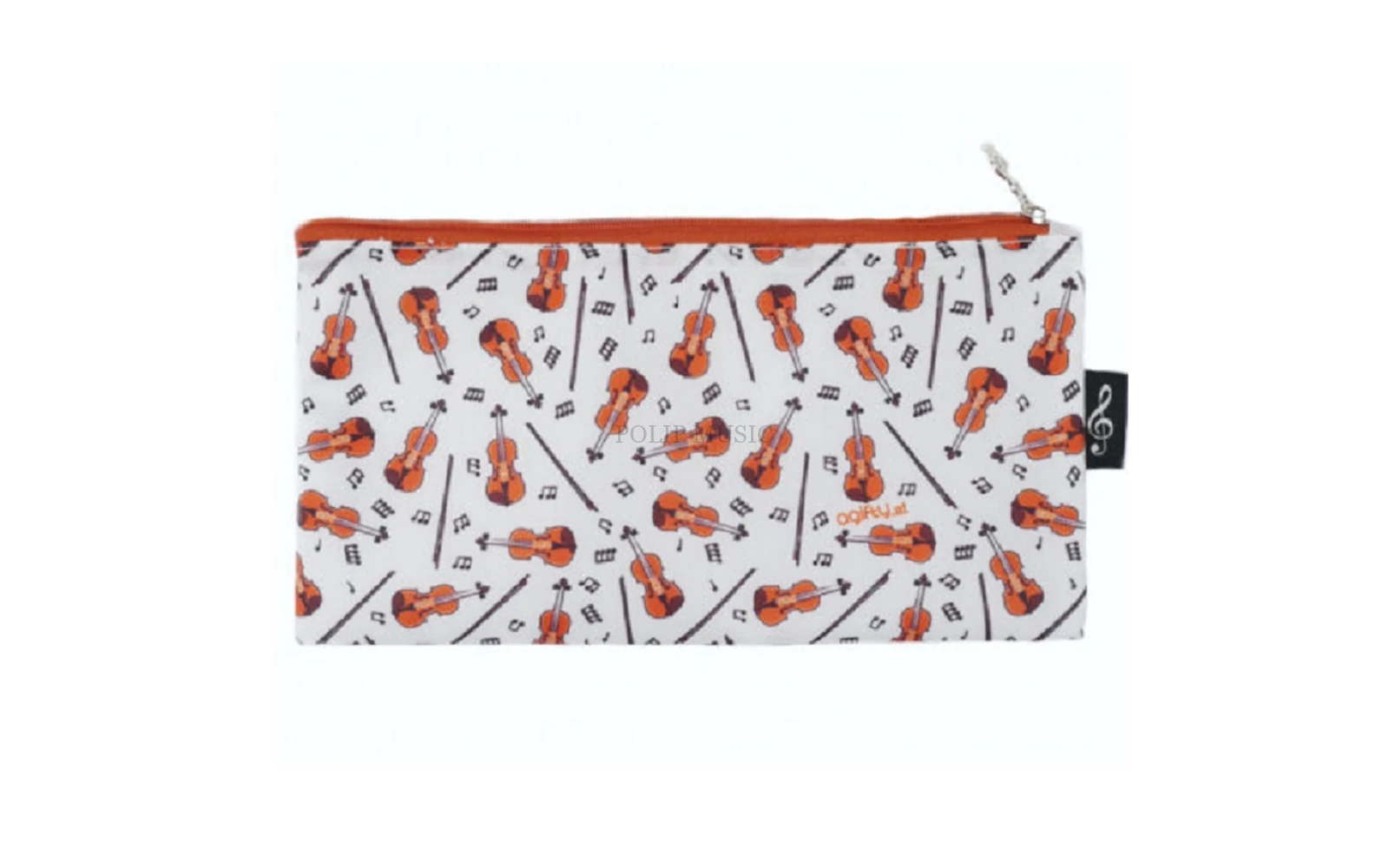 Fehér színű színes hegedű mintás tolltartó 24×12 cm AGP1036 Zenei ajándéktárgy