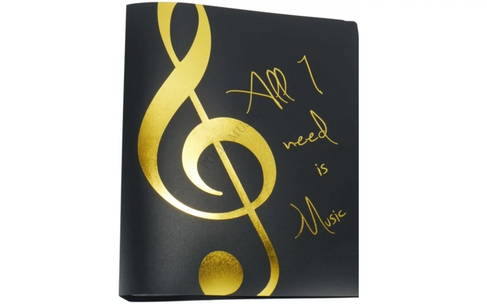 Fekete mappa, arany színű "All I need is Music" felirattal és violinkulccsal, 20 db lefűzött irattartóval AGF1024 A/4 méretű Zenei ajándéktárgy