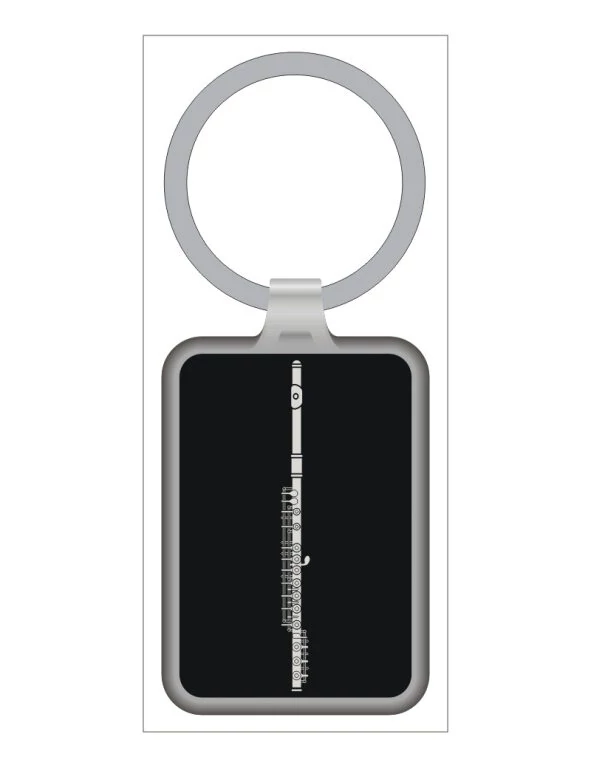 Fém, fuvola mintás kulcstartó 7,5x3 cm AGK1068 Zenei ajándéktárgy