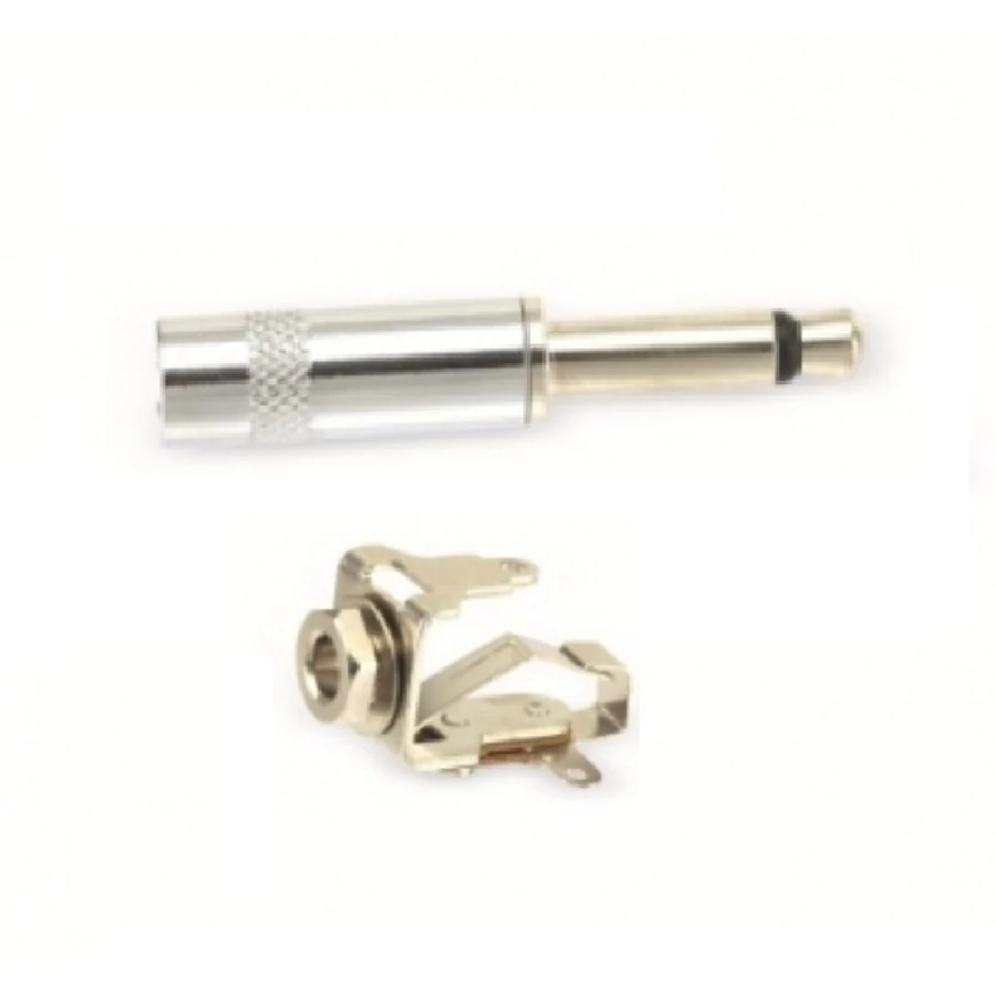 Forrasztható 6,3mm mono jack dugó WTY0019M fém, beépíthető aljzattal
