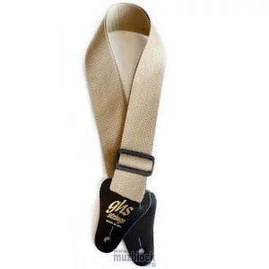 Állítható nylon gitár heveder, bőr végekkel, 5 cm széles, beig/drapp színű.