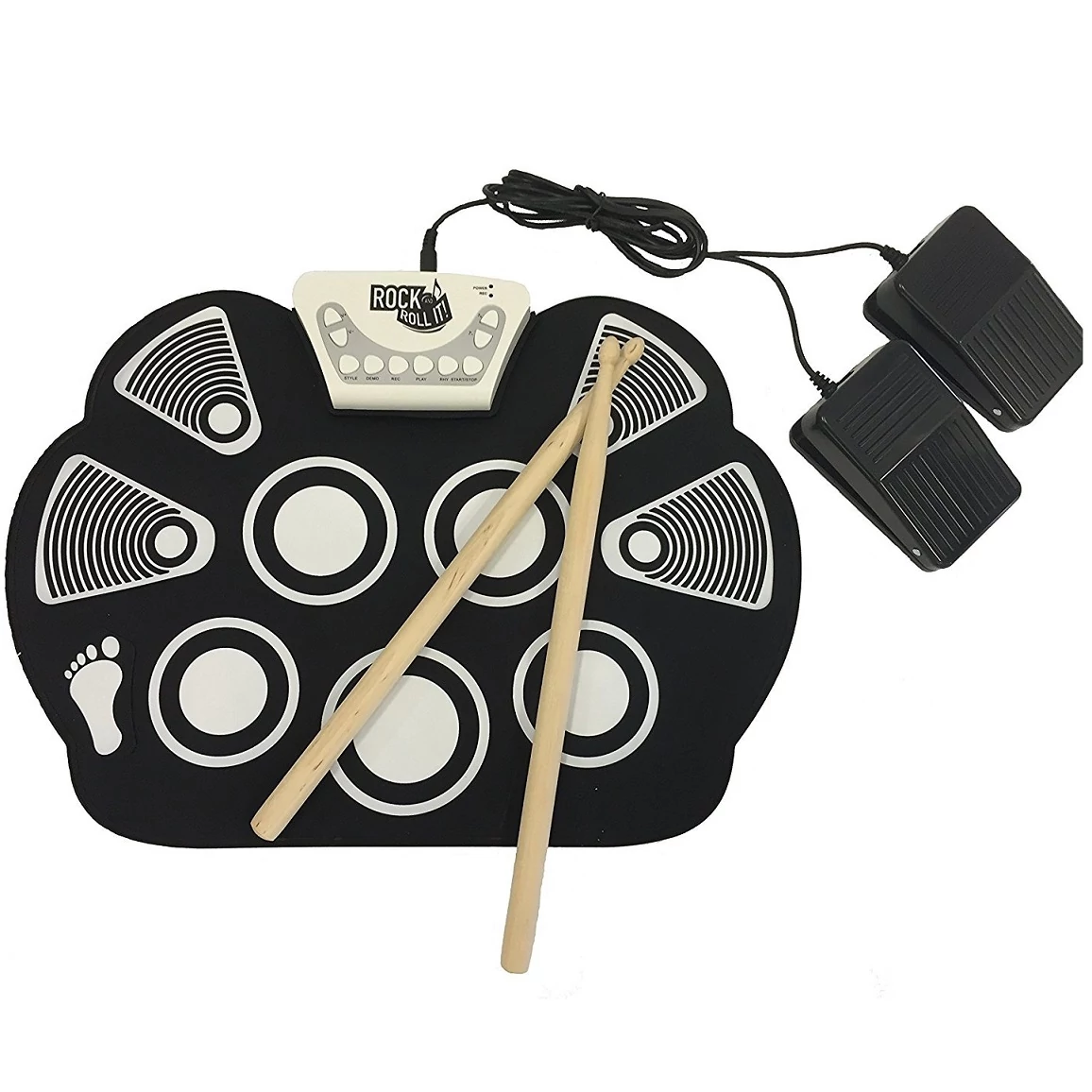 Roll-up elektromos dob rugalmas szilikonból - feltekerhető , 9 pad + 2 pedál , MP3-csatlakozó, fejhakgató, dobverő