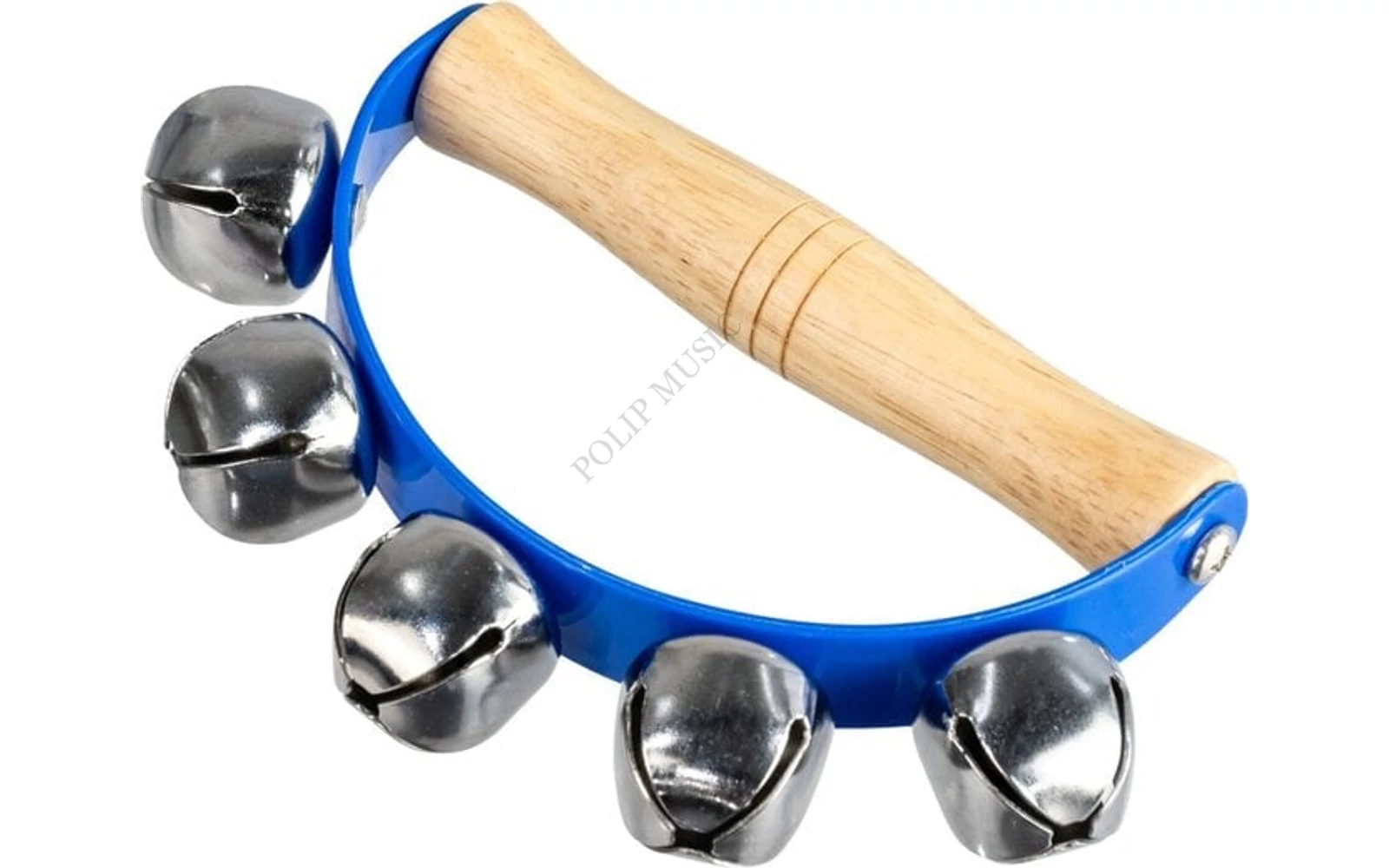 Fa fogantyú, 5 csörgő, kis méret, csilingelő hang, kék szín.
