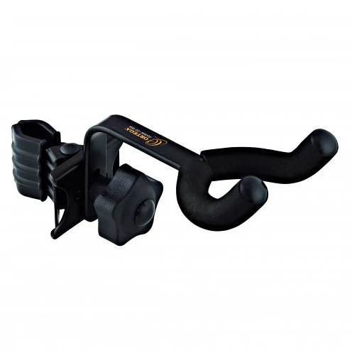 Speciális ukulele tartó amely mikrofonállványhoz rögzithatő. A tartó felszerelhető clamp bilincsgel, erős szorítóval, amely könnyen csatlakoztatható a mikrofonállványhoz. A felhasznált anyagoknak köszönhetően a hangszer felülete nem sérül. A tartó minden típusú ukulele, mandolin vagy kis folk hangszer számára alkalmas. Szín: fekete.