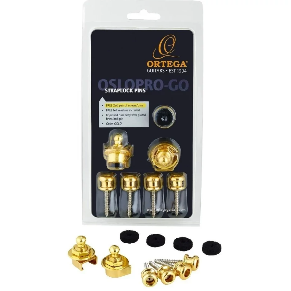 Biztonsági zárak a a heveder egyszerű és biztos rögzítéshez. A zárak biztosítják a hangszer szoros és biztonságos rögzítését, amely soha nem csúszik ki a hevederből. A készlet gitárral vagy basszusgitárral való használatra alkalmas. A csomag magában foglalja a zárakat, csillapító gyűrűket és csavarokat. Szín: Gold.