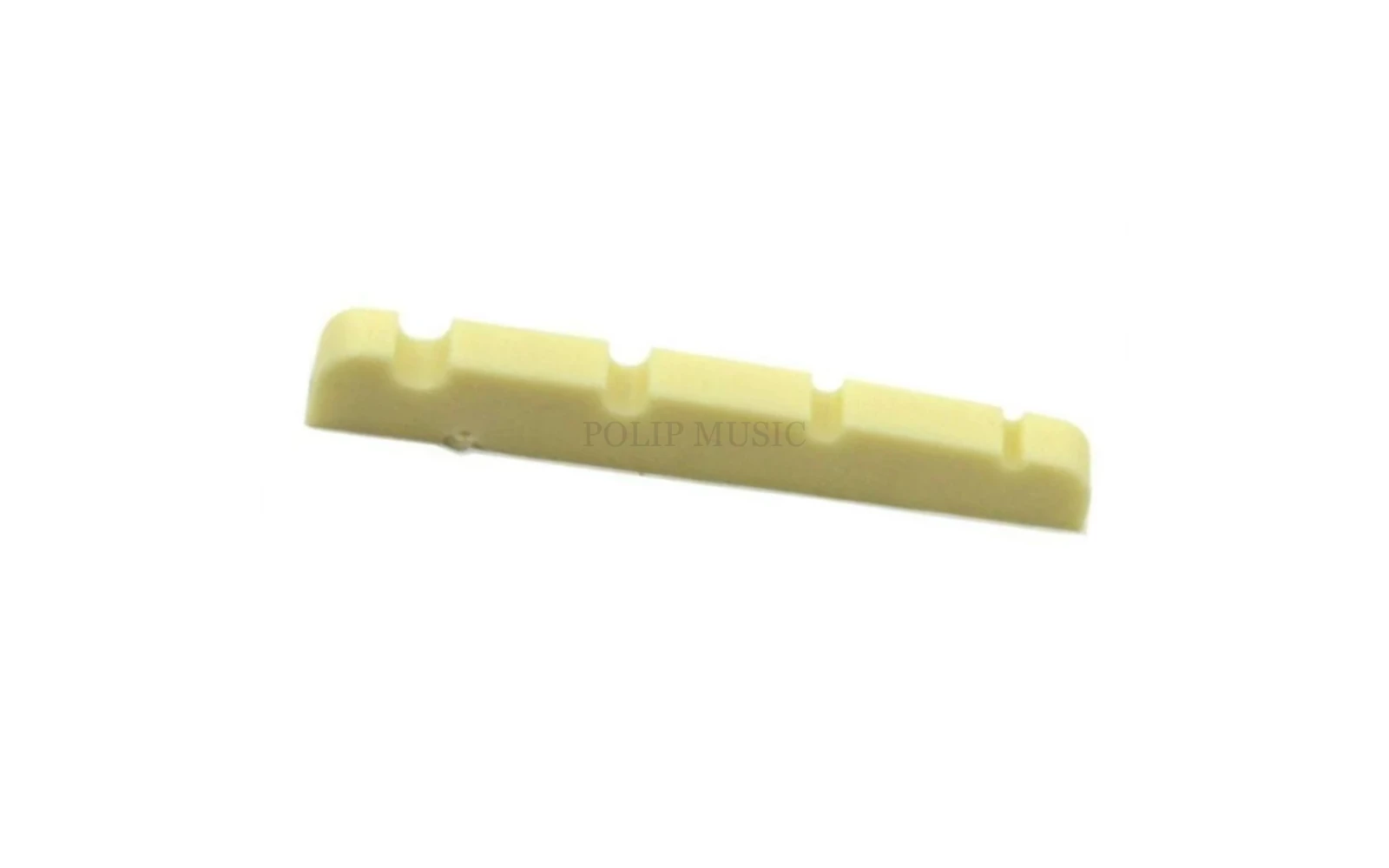 pótalkatrész: műanyag felső nyereg 4 húros basszusgitárhoz, méretek: 38 x 3.4 mm, Ivory kivitel