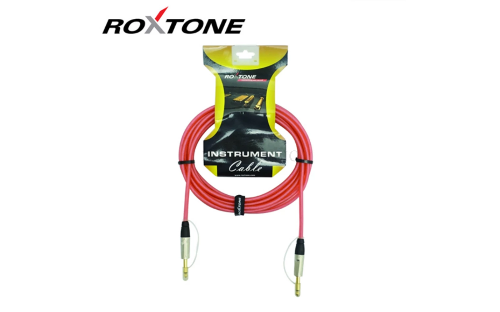 Roxtone TGJJ100L3-TRD 6,3 Jack - 6,3 Jack professzionális gitárkábel, 3m (transparent piros)
