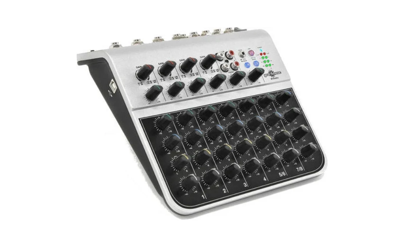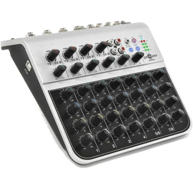 hordozható keverőpult, kompakt kialkítás, egyszerű kezelhetőség, alumínium ház, 4x XLR bemenet, RCA be- és kimenetek, 1x AUX, USB csatlakozás, fejhallgató kimenet, LED kijelző, aktiválható 48 V fantom táp kondenzátor mikrofonhoz