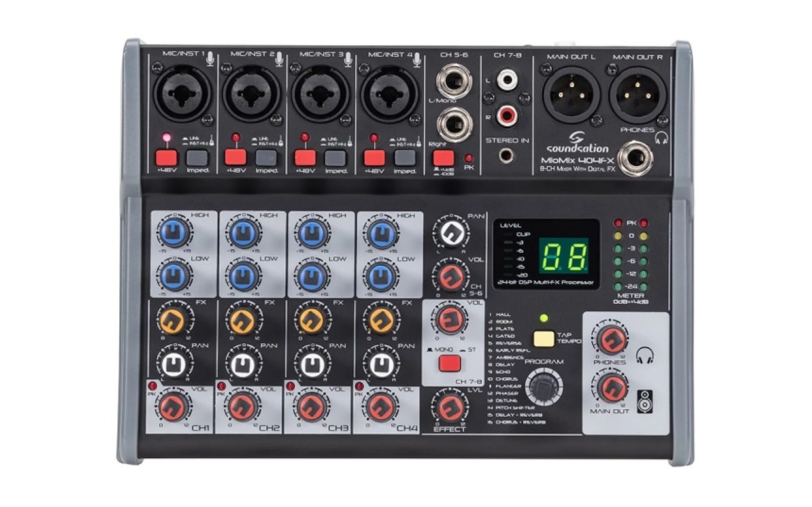 Soundsation MIOMIX 404FX - 8-Channel Professional Audio Mixer with 24-bit Digital Multi-Effect