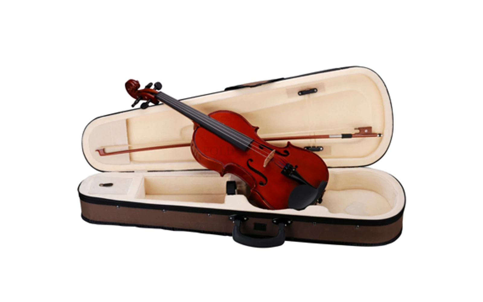 Virtuoso Student szériás hegedûk , fa anyaghasználattal , ötvözött alumínium elemekkel , integrált állítható húrtartóval és kiegészítõkkel. Tökéletes választás minden tanuló zenész számára. Faragott tömör lucfenyõ fedlap Tömör juharfa hát és oldallapok Binding : dekorált intarziás Juharfa híd Festett juharfa fogólap Festett juharfa kulcs és álltartó Öntött alumínium húrtartó különálló finomhangolókkal Hatszögletû brazil fa vonó Cseresznye barna szín Fényes kivitel Barna tok világos belsõ résszel Kiegészítõk : gyanta , pánt , húrok Méret: 1/6