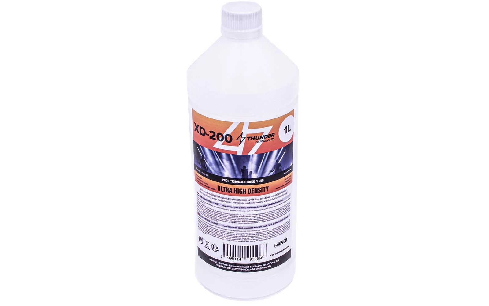 A Thunder füstfolyadékok az egyik legnépszerűbbek, mind a magyar, mind az európai piacon. A kínálatában megtalálható füstfolyadékok között három sűrűségi szintet különböztethetünk meg: SD – normál sűrűség; XD – eXtreme sűrűség; ULTRA – EXTRA FEHÉR – ködsűrűség. A magasabb sűrűségű folyadékok előnye, hogy azonos mennyiségű füst előállításához kevesebb folyadékra van szükség, illetve a füstgép ugyanolyan mértékű használatával érezhetően több füst keletkezik. Emellett a sűrűbb folyadékok a füstgépet is kímélik, hiszen jóval rövidebb ideig szükséges üzemeltetni azt, valamint a füst hosszabb ideig megmarad. A folyadék Franciaországból származik, TÜV minőségbiztosítási vizsgával rendelkezik, ami garantálja a kiváló minőséget. Fő összetevője a víz, a glicerin és különböző glikolszármazékok keveréke, füstje egészségre teljesen ártalmatlan. Prémium minőségű termék.