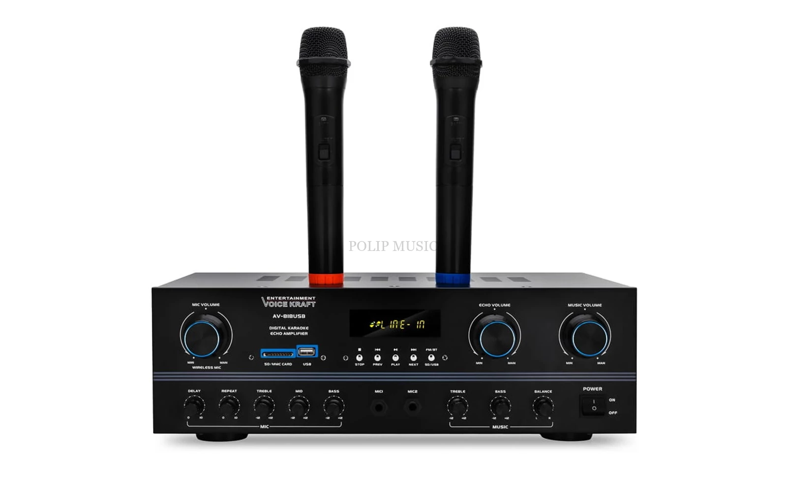 Voice Kraft AV818 USB/SD/BT 5CH 2x100W HIFI045 Karaoke erősítő 2db mikrofonnal