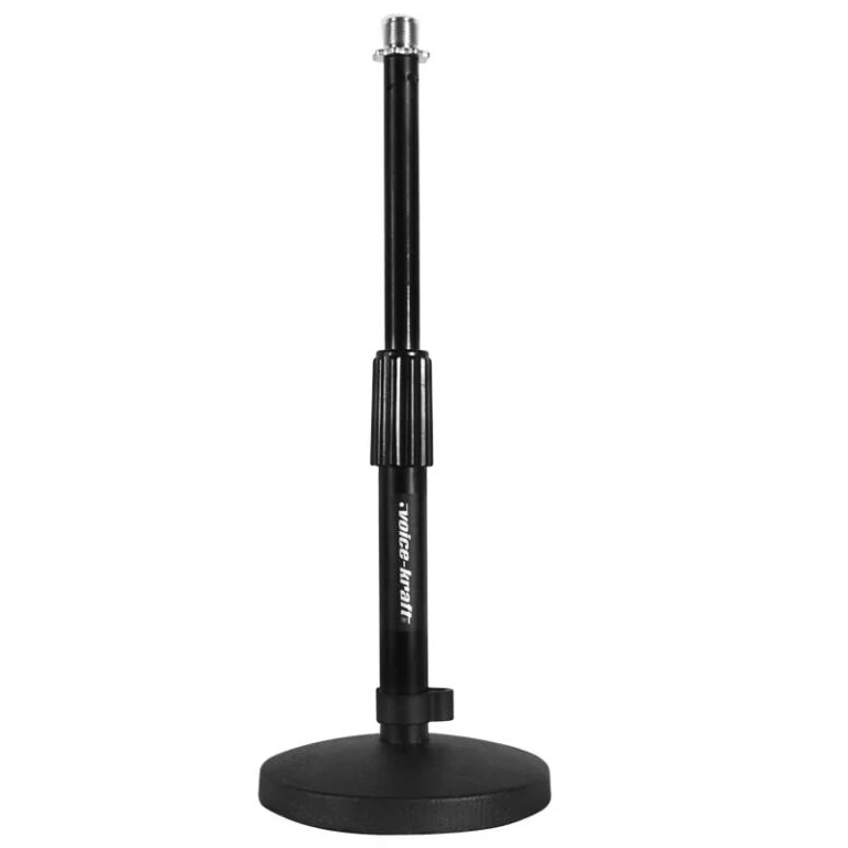 Körtalpas asztali mikrofon állvány. Öntött vas talpának köszönhetően rendkívül stabil, gumi talpa pedig jó tapadást biztosítanak. Az állvány magassága állítható, így bárki kényelmesen beállíthatja a neki megfelelő mikrofon magasságot. Az állvány tartozéka egy szűkítő gyűrű, így bármilyen mikrofonkengyel felerősíthető rá.
