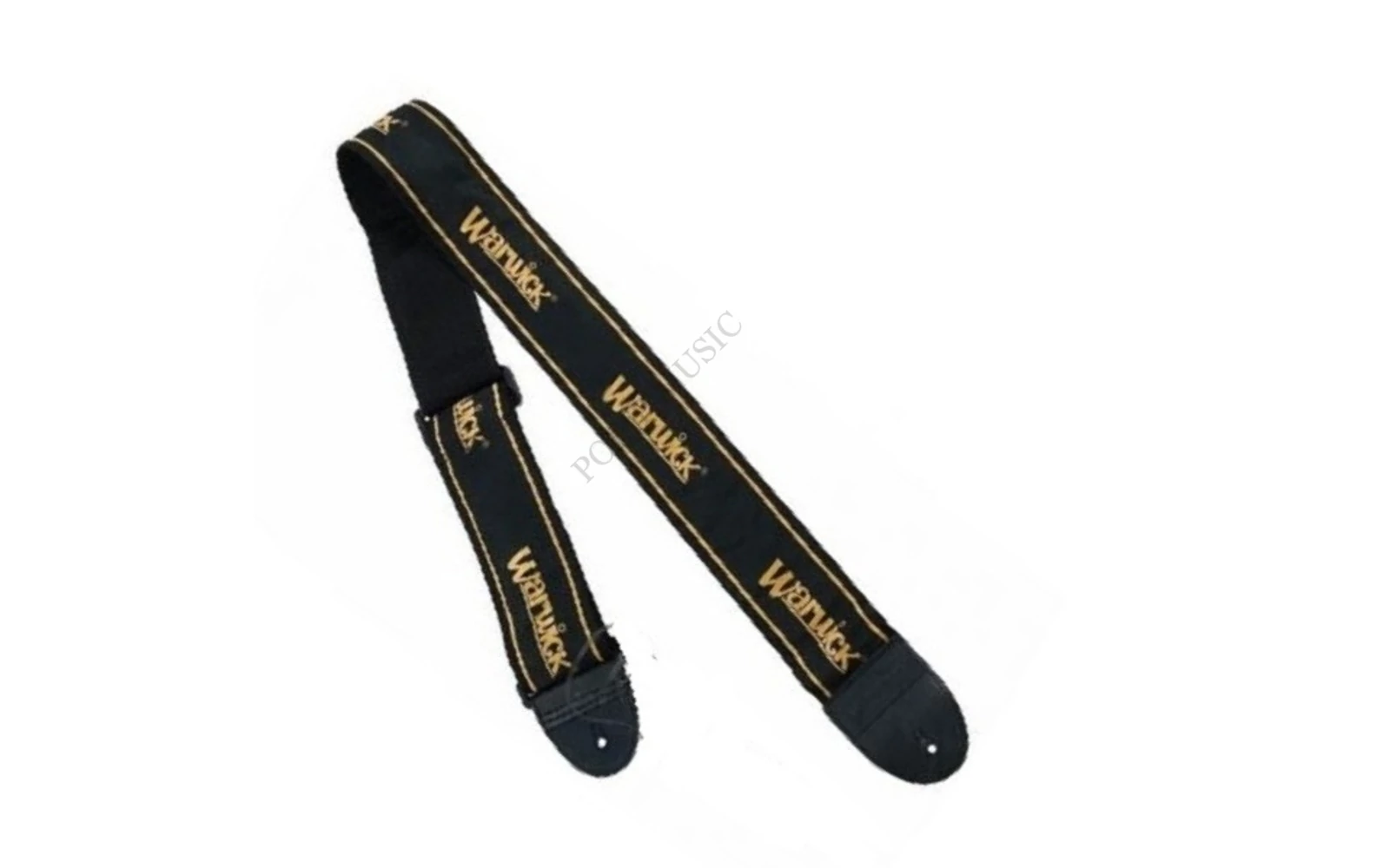 80 mm széles fekete gyöngyvászon, arany "warwick" felirattal; a végein műbőr pántok szintén "warwick" logoval.